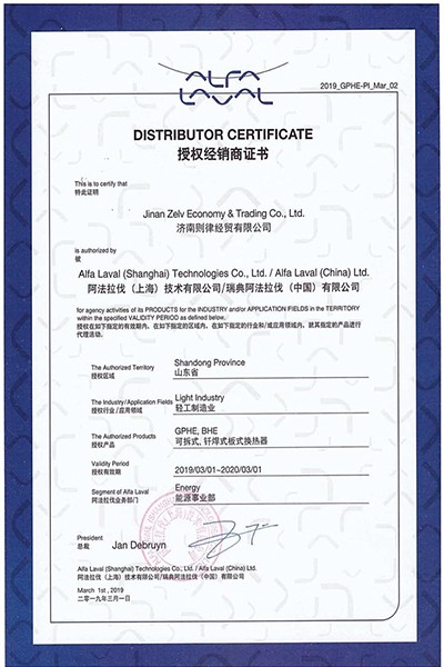 定制产品类型:阿法拉伐板式换热器授权经销商证书